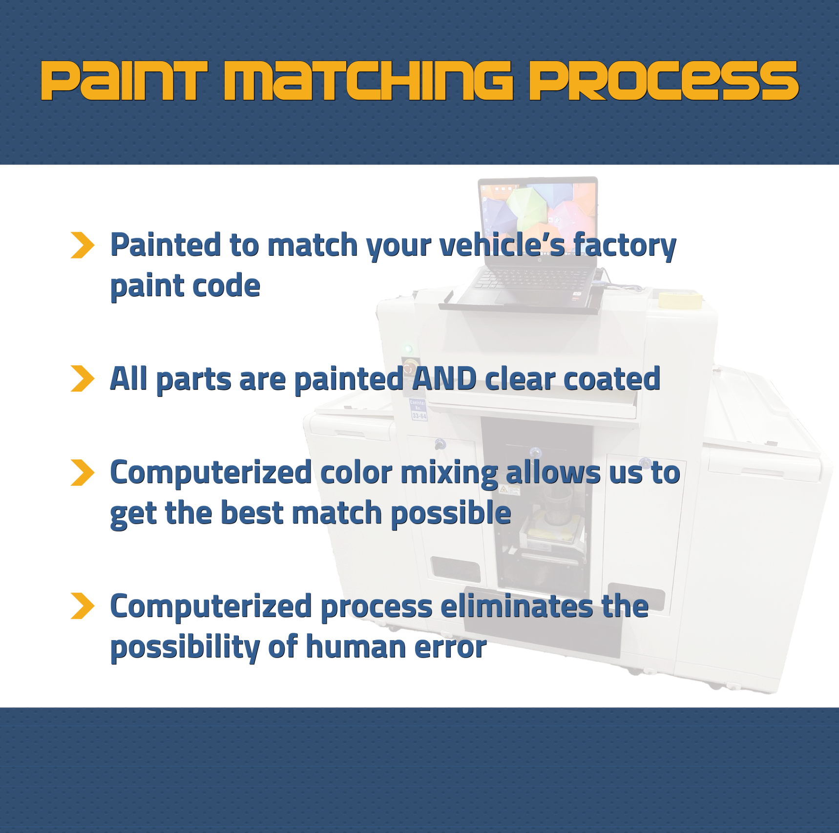 Enjoy FREE SHIPPING for all painted bumpers, fenders, tailgates and fender flares to the Contiguous USA.